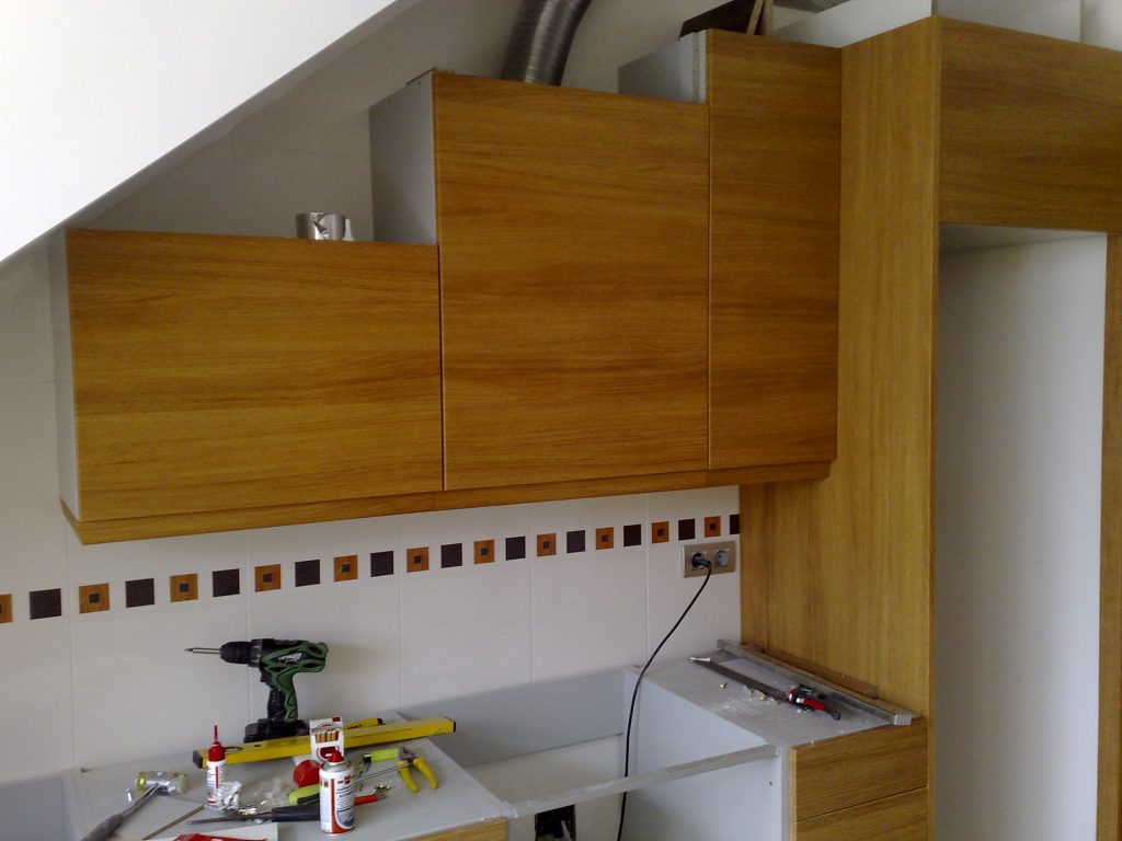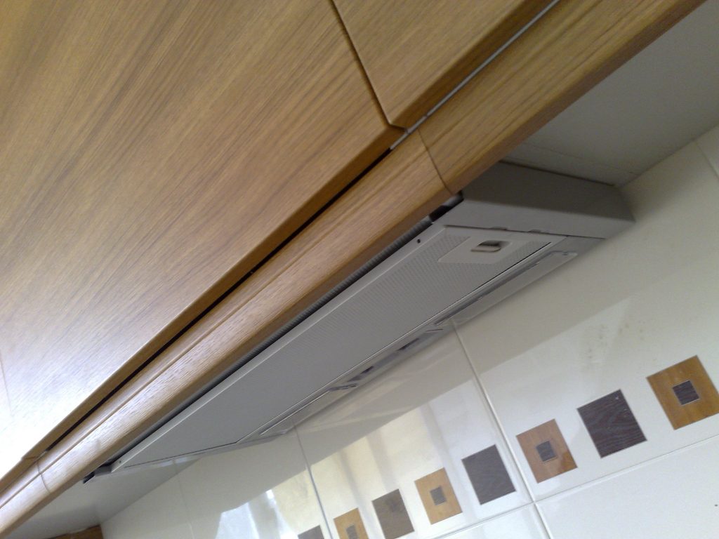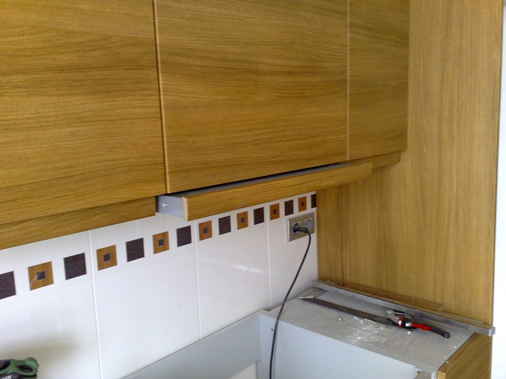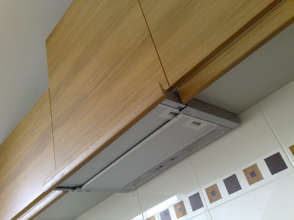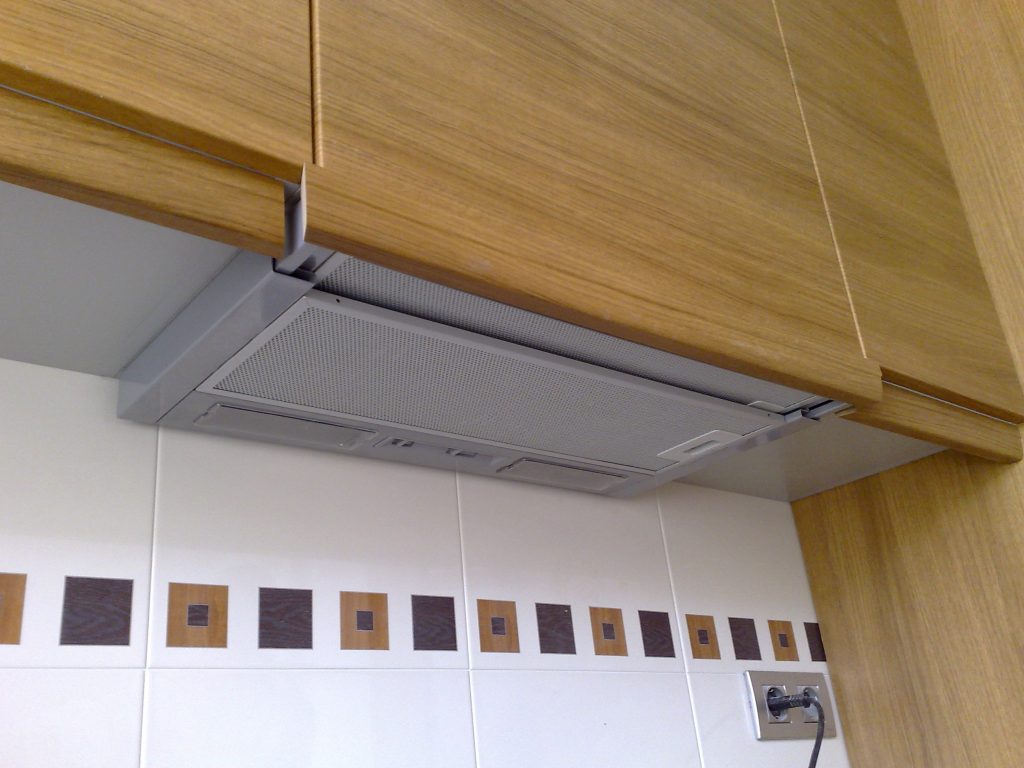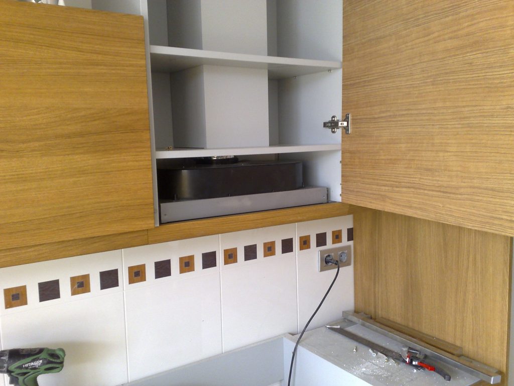Estas son las imágenes de los primeros trabajos en una cocina de obra. Una de las primeras formas de integrar, ocultando una campana telescópica económica.