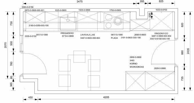 - Limitaciones: Electrodomésticos cliente: Frigorífico 70 cm, Lavavajillas de libre instalación inox.