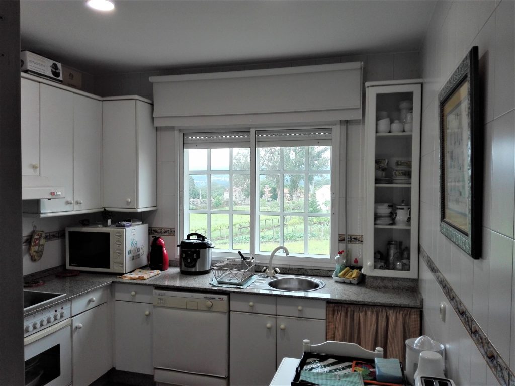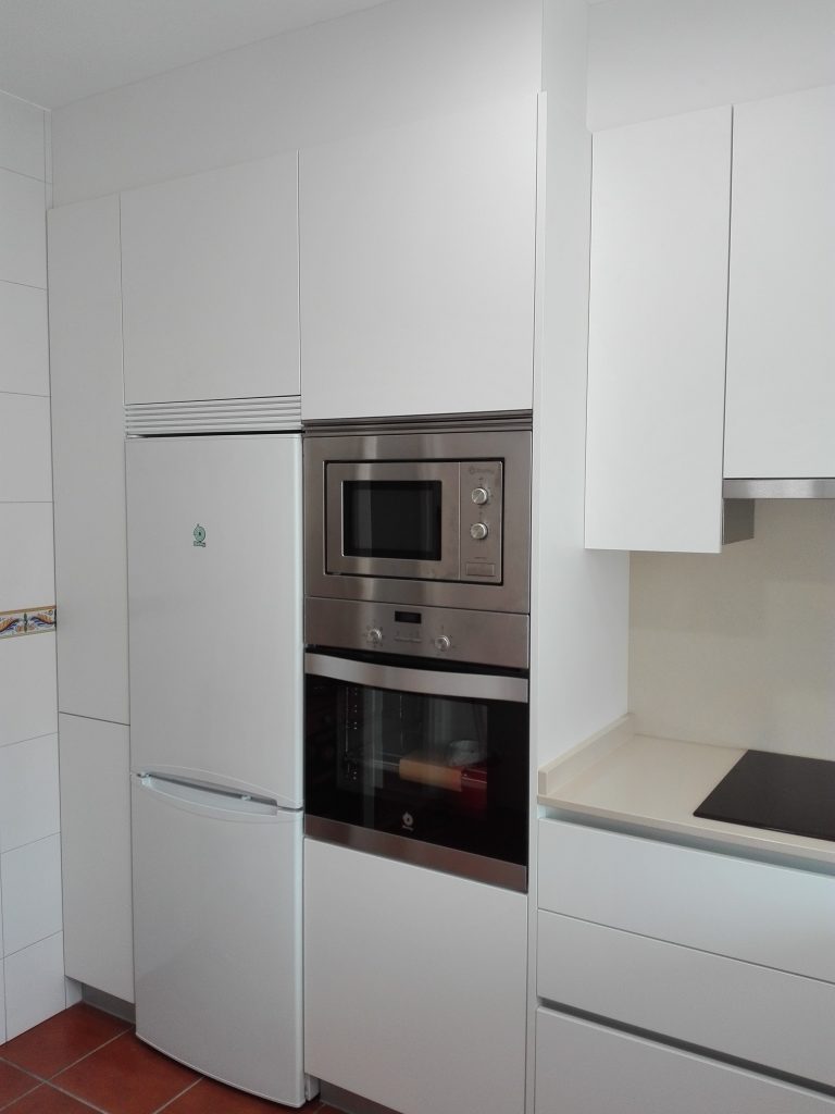 - Electrodomésticos: Campana, placa vitrocerámica, horno, microondas y lavavajillas integrable total, de la marca Balay. Fregadero y grifo mono mando de la marca Teka.