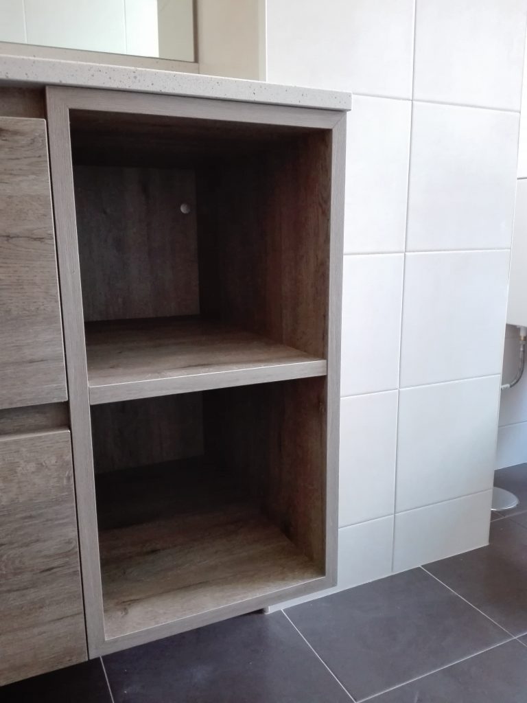 Este es un mueble de baño personalizado desde cero, tanto en materiales como en diseño. Es el cliente el que elije todo. Lo que lo convierte en único.